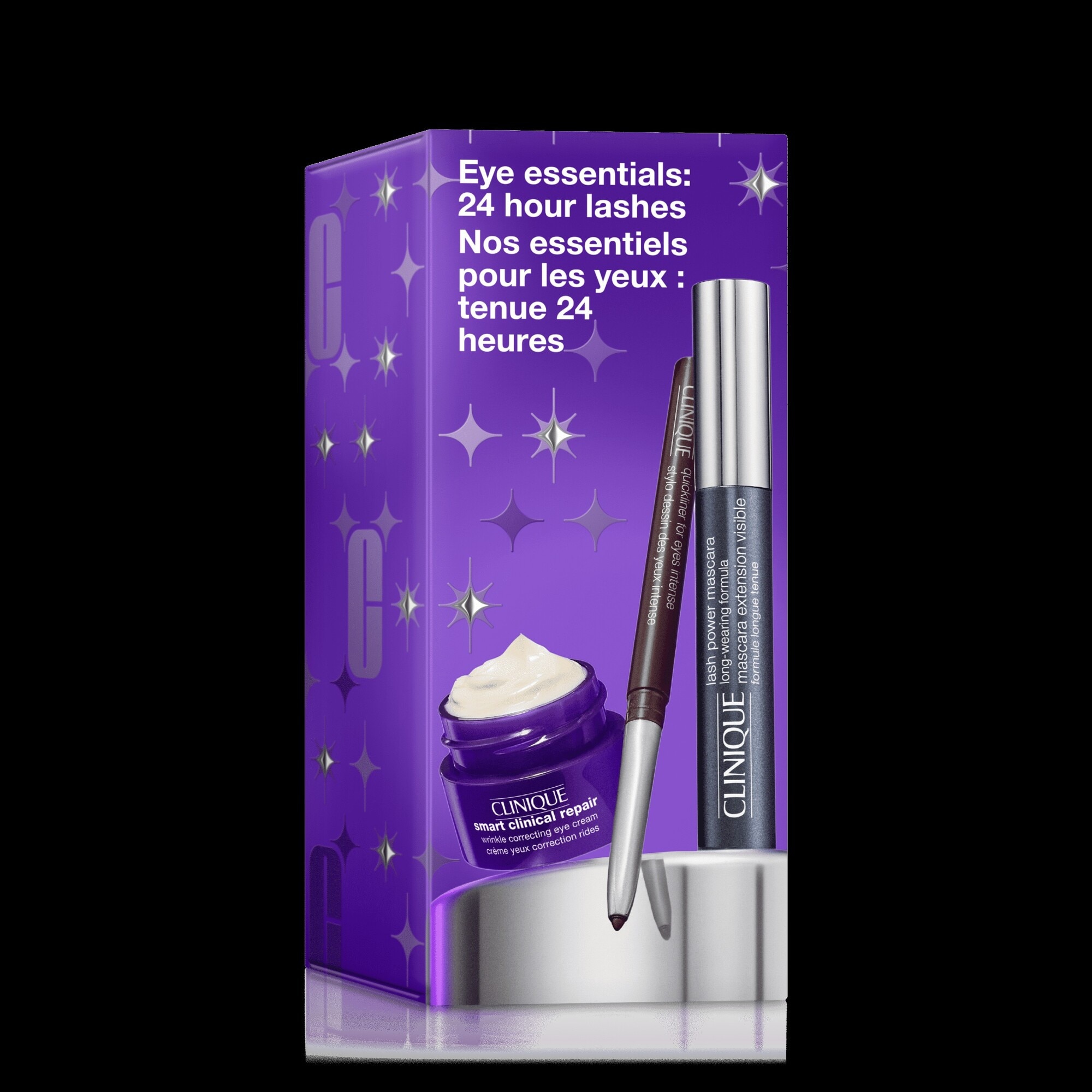 Ein Trio für atemberaubende Looks und Wimpern, die lange halten. Enthält eine Augencreme, einen Liner und eine langanhaltende Mascara.* Die Clinique Smart Clinical Repair Wrinkle Correcting Eye Cream kräftigt und glättet sichtbar die feine Haut rund ums Auge.