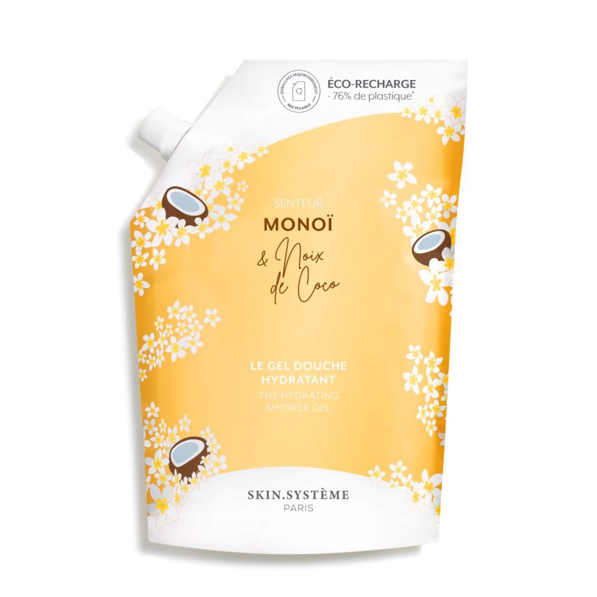 * Diese 500 ml Nachfüllpackung enthält 76% weniger Plastik als zwei 250 ml Flaschen Skin.Système Paris Duschgel.